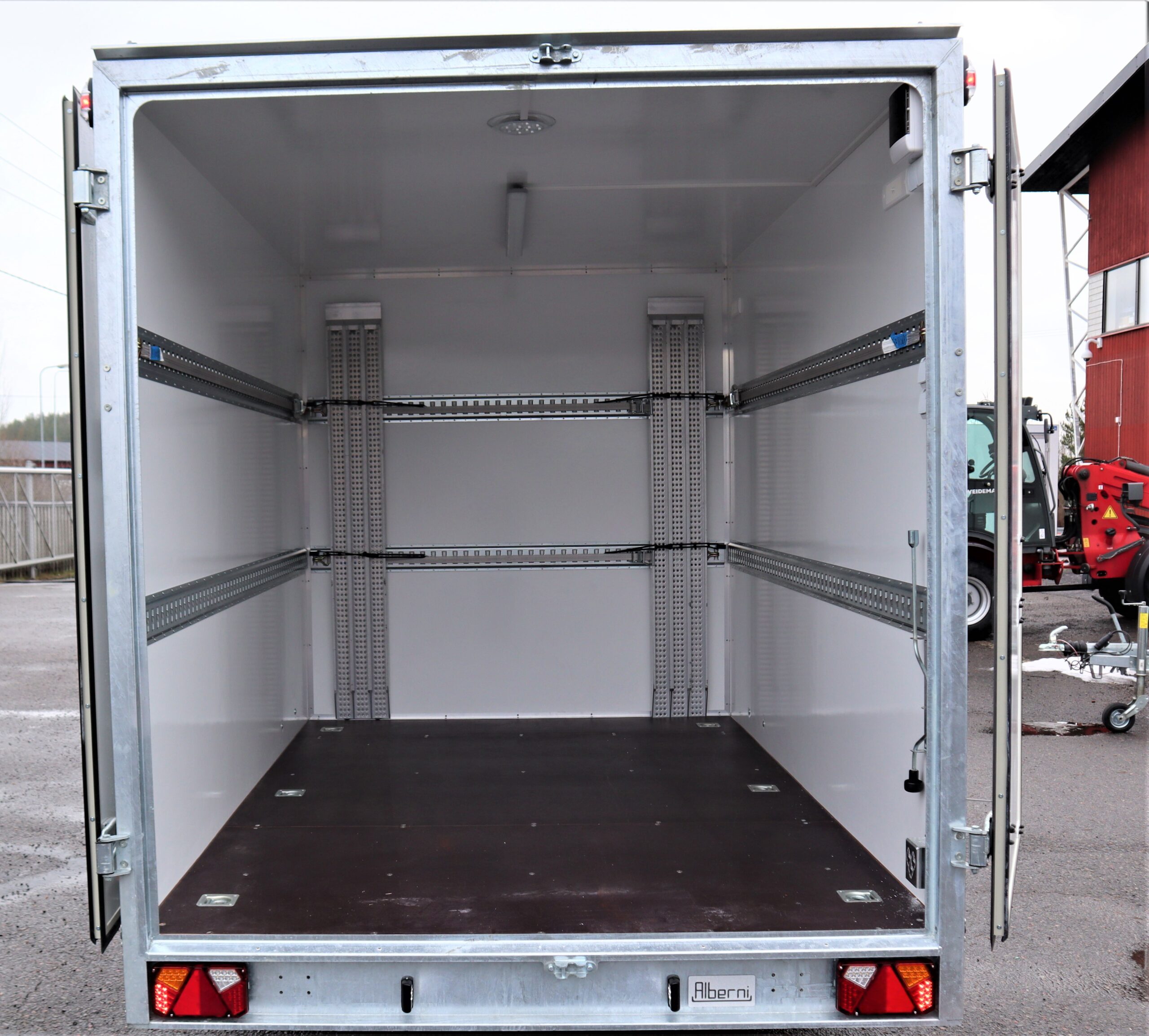 ”Tavaratilan koko on eri versioissa 12,6 ja 18,5 kuution välillä, ja tila on myös varusteltavissa tarpeiden mukaan. Esimerkiksi valaistus, kiinnitysvaihtoehdot, sivuovet, rampit tai lastaussillat saa juuri haluamillaan vaihtoehdoilla ja tila soveltuu hyvin rakennustarvikkeiden, työvälineiden tai vaikkapa moottorikelkkojen tai mönkijöiden turvalliseen kuljetukseen. Huomionarvoista on myös erinomainen iskunvaimennus sekä kitkavetokita, jotka tekevät ison vaunun vetämisestä varmaa ja yllätyksetöntä. Pitempiä pysähdyksiä varten vaunussa on jämerät säädettävät tukijalat ja pistorasiat sähköä varten. Vaunun rakenne on paksua lasikuitupinnoitteista uretaanikerroslevyä ja kuumasinkitty runko kestää kovankin käytön”, lisää Kalle Alander.