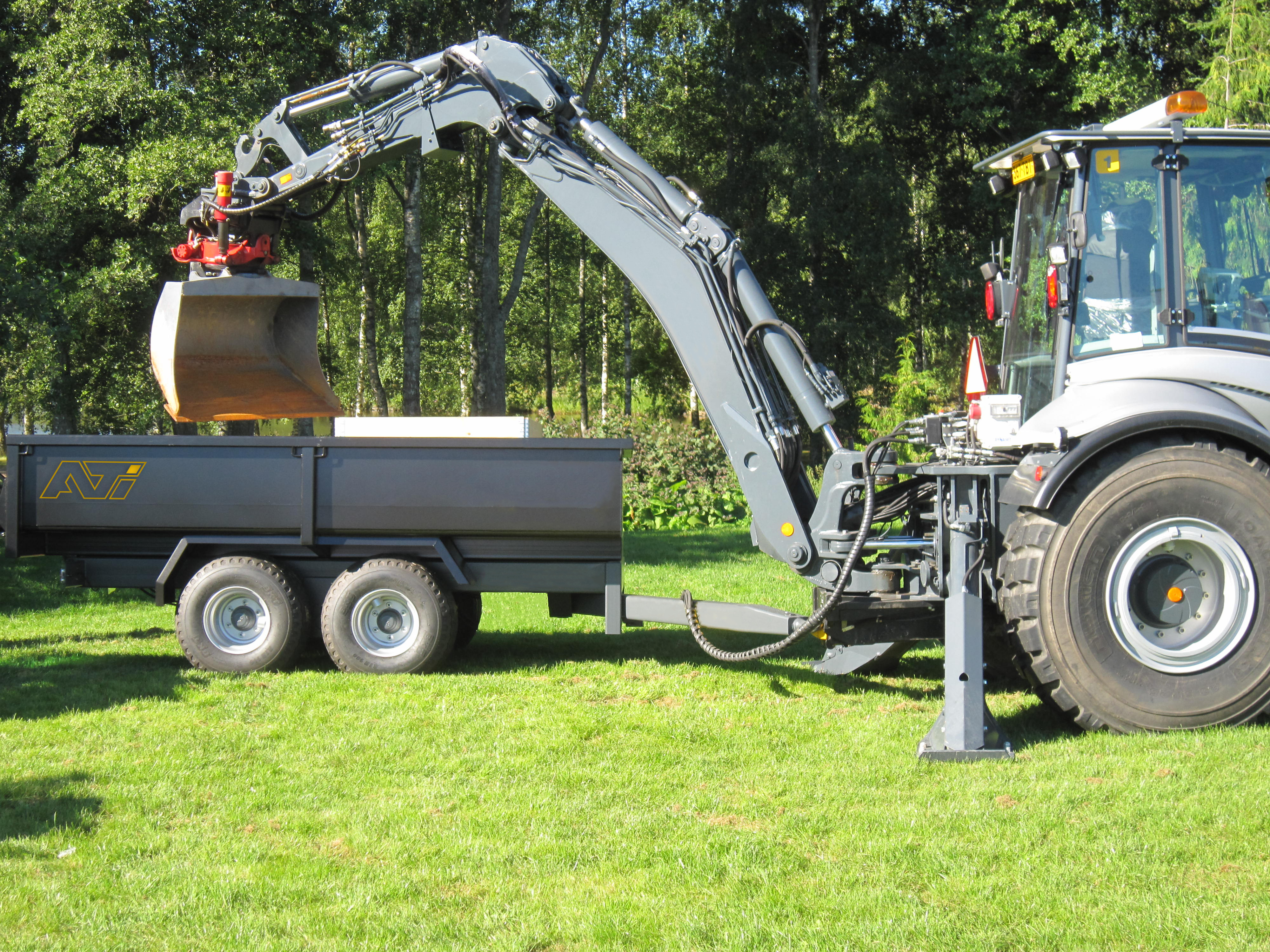 Lähinnä pyöräalustaisten kaivukoneiden kanssa käytettävä ATI 8T -perävaunu on käyttökokemusten kautta muokattu mahdollisimman helppokäyttöiseksi.