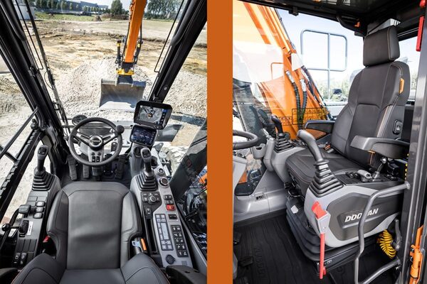 Istuin on ilmajousitettu ja lämmityksellä varustettu. Jäähdytyksenkin siihen saa, mutta sen Doosan luettelee lisävarusteeksi. Tuulilasinpyyhkimet toimivat yhdensuuntaisina ja jalkapolkimet on uudelleen muotoiltu. Edelleen Doosan kertoo parantaneensa ilman kiertoa ohjaamossa, jolloin esimerkiksi huurteenpoiston laseista luvataan olevan nopeampaa kuin ennen.
