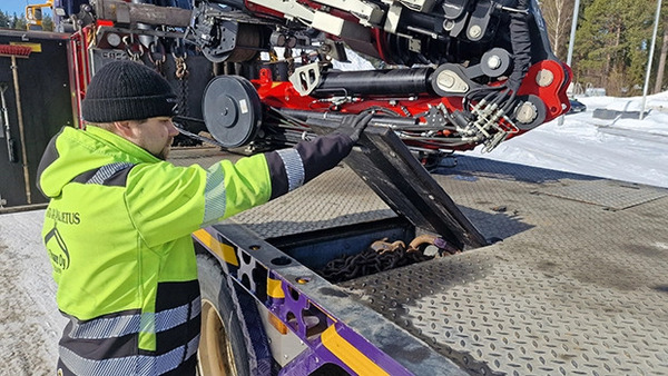 ”Yksi takuunalainen korjaus on tehty, ja se tehtiin viivyttelemättä. Koska toimimme melko kaukana Helsingistä ja Grutechin toimipaikasta, nosturin mukana tuli varaosapaketti, jossa on keskeisimmät ja tärkeimmät varaosat. Se on meillä hyllyssä, ja lunastamme osia sen mukaan, kun tarvetta on”, Jouko Rusanen kertoo, ja jatkaa, että paketin sisältö on myös muiden Fassi-käyttäjien käytettävissä. ”Se on tavallaan varaosavaraston pieni etäpiste, josta Grutech voi tarjota avun esimerkiksi satunnaiselle lähialueella käymässä olevalle avun tarvitsijalle.”