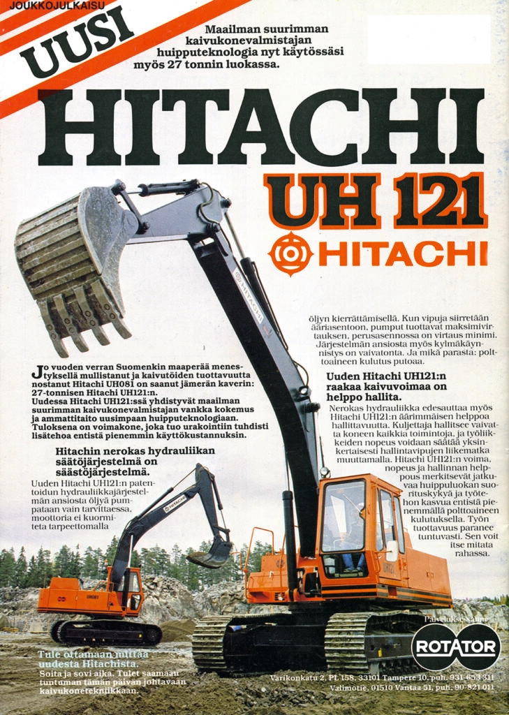 Aivan ensimmäinen Suomeen toimitettu, Hitachi-merkkinen kaivukone oli tela-alustainen, 18,5 tonnia painava UH 081. Sen osti Karkkilan Kaivuu- ja Kuljetus Oy huhtikuussa 1983. Ensimmäisen vuoden aikana Rotator toimitti yhteensä 10 kappaletta Hitachi-kaivukoneita. Yhdeksän niistä oli mallia UH 081 ja yksi järeämpi eli 26 tonnia painava UH 121. UH-1-sarja uudistui pian UH-3-mallistoksi. Myynti kasvoi voimakkaasti heti alkuvuosista lähtien. Vuoden 1986 lopussa Suomeen toimitettujen Hitachien lukumäärä oli jo 76 kappaletta.