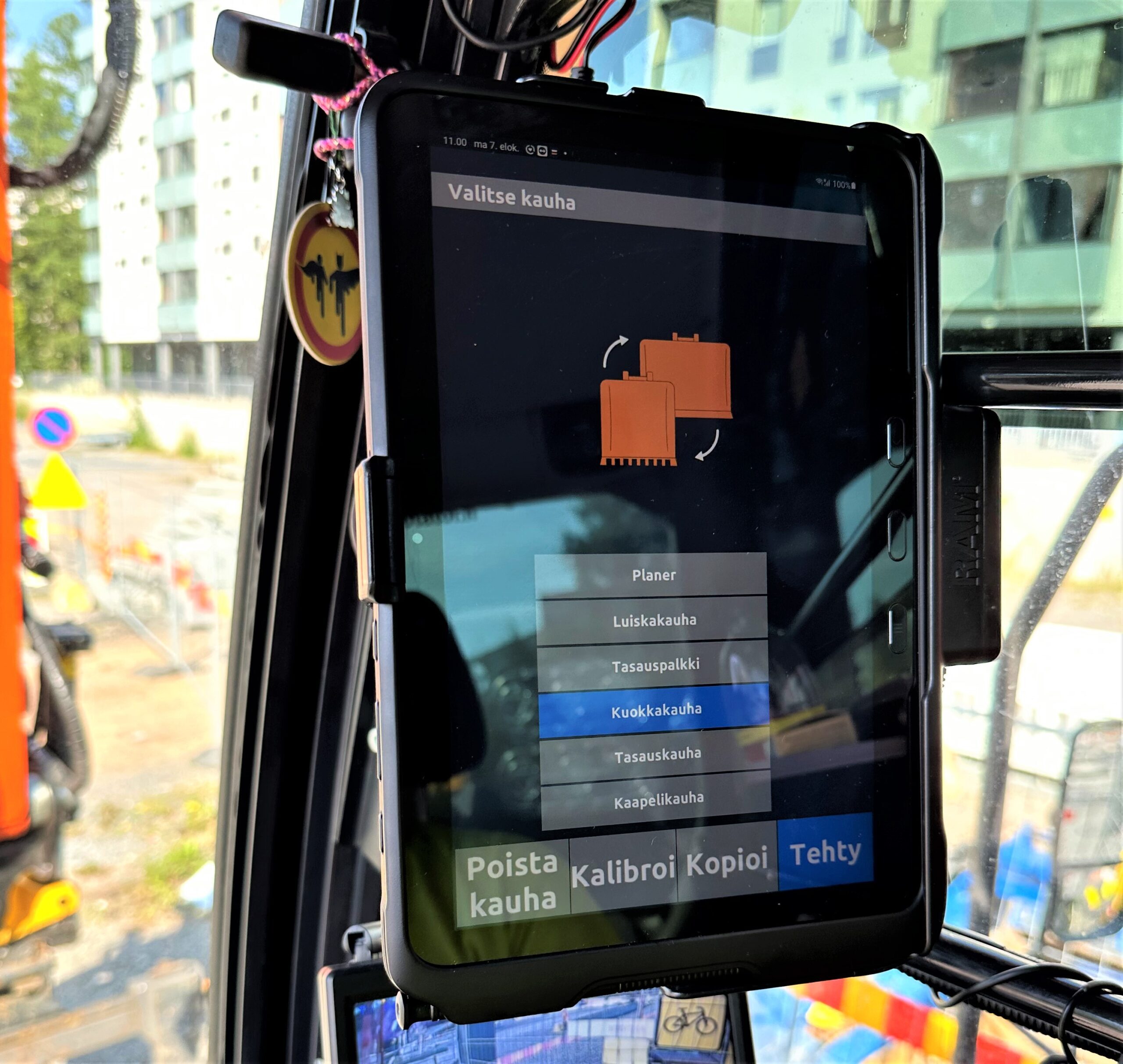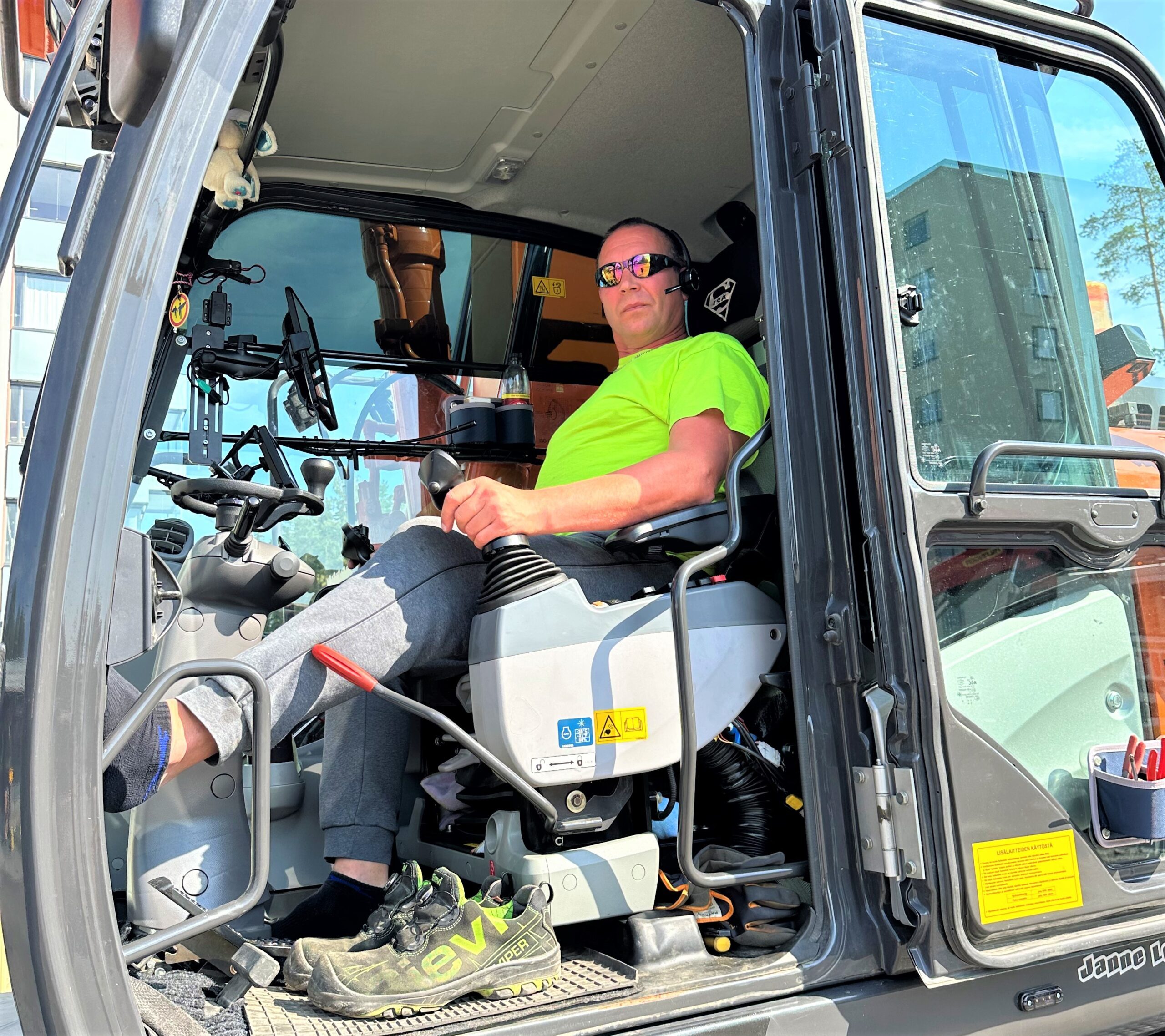 ”L5 Navigation -järjestelmän kuusi anturia on asennettu tarkasti oikeille paikoille ja näin kaiken urakoinnissa tarvittavan tiedon saa ruudulta selkeästi ilman viivästyksiä. Nopeasti mietittynä ainoa puute on korkeusrajoituksen puute, ja toive onkin jo välitetty eteenpäin. Hallintapaneelin näytön selkeys on hyvää luokkaa, ja esimerkiksi tarkkeiden jako, kauhan valinta sekä kaikki tarvittava raportointi pilvipalvelujen kautta onnistuu vaivatta.”