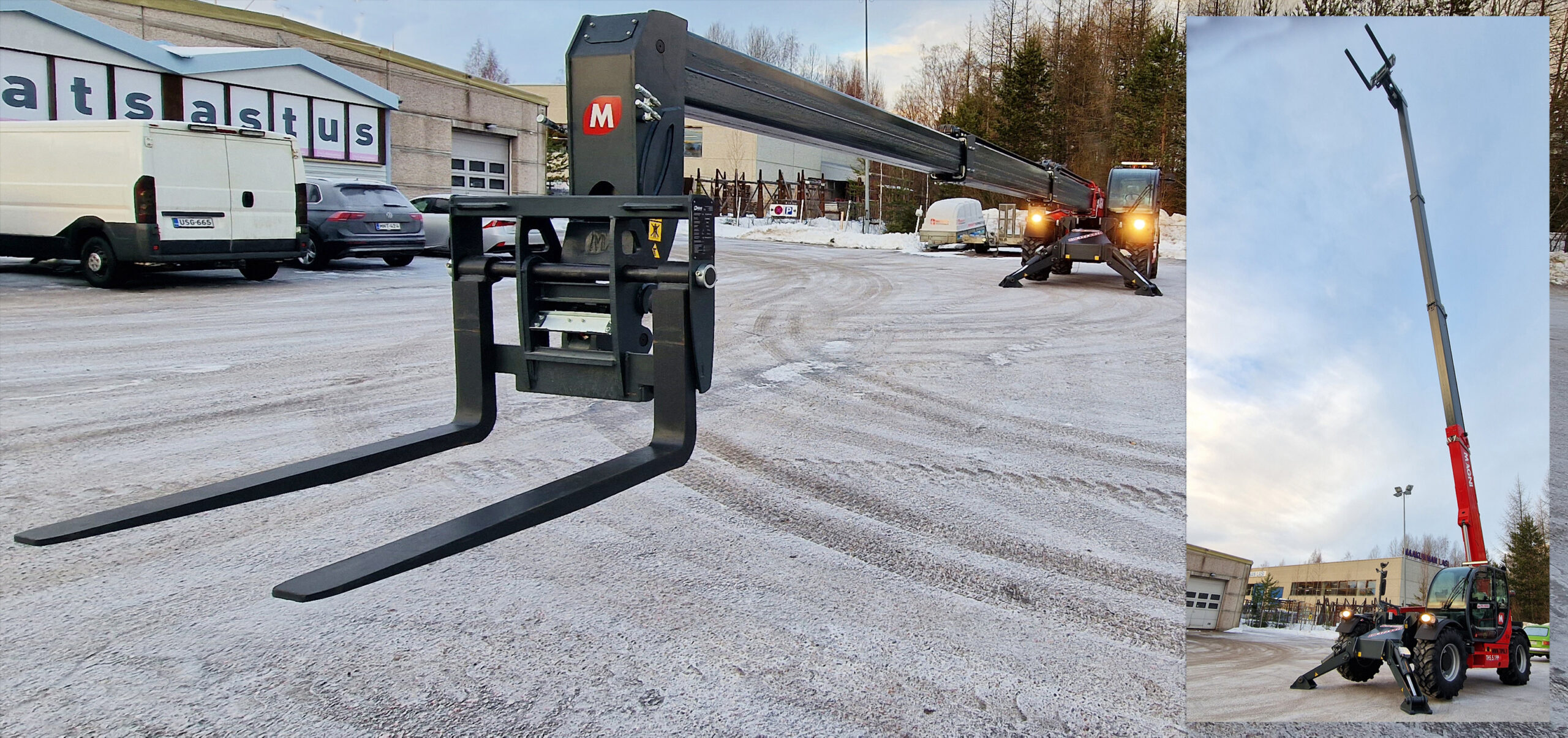 ”Tämä uusi Magni lähtee sellaiselle asiakkaalle, jolla on ollut kurottaja meiltä jo 10 vuotta. Viiden vuoden välein kone vaihtuu uuteen.”