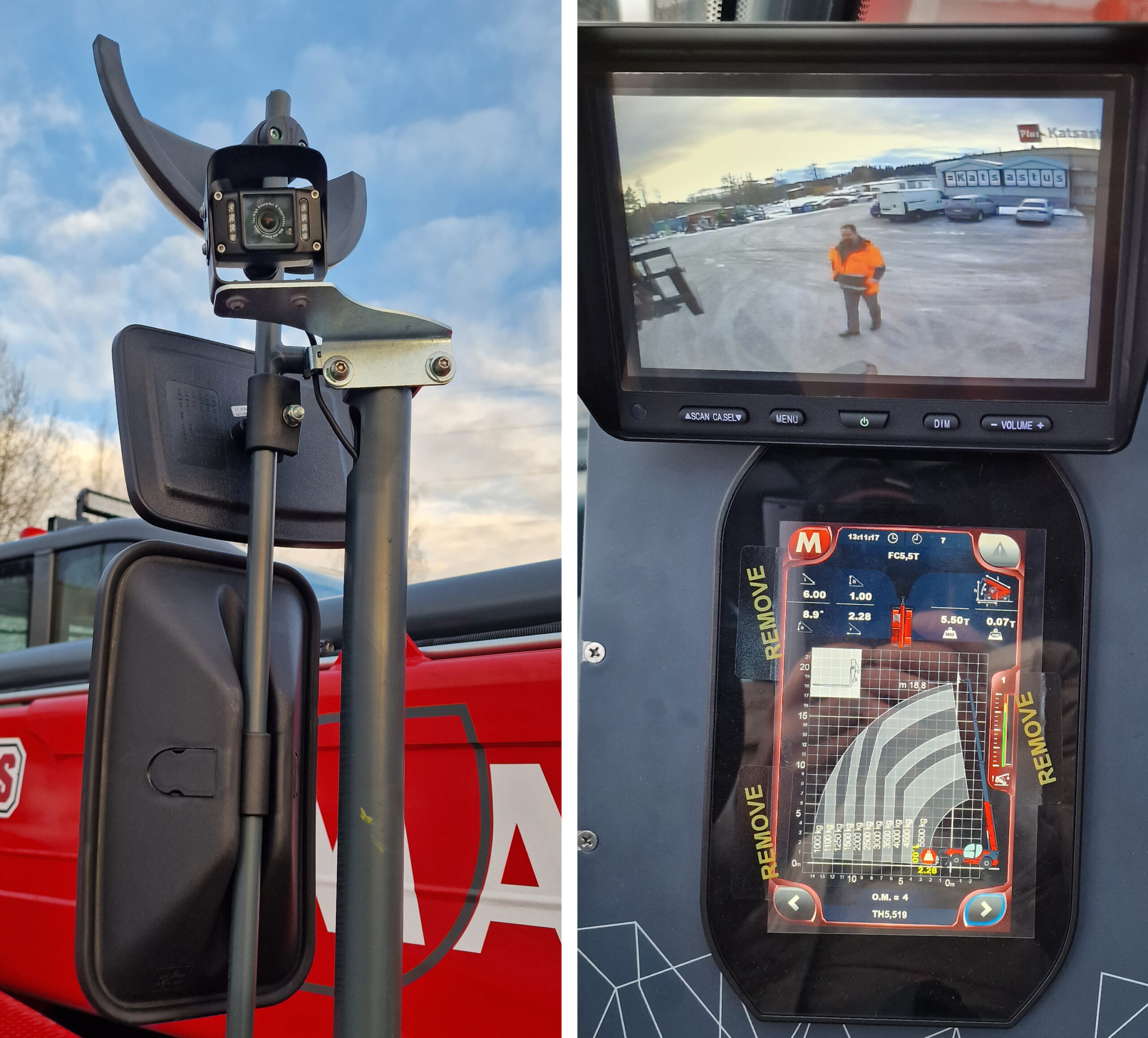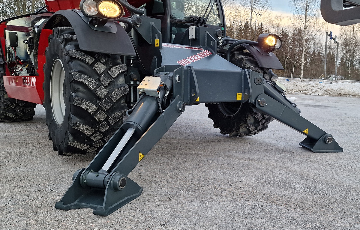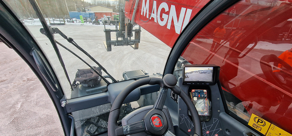 ”Magni käyttää kaikissa kurottajamalleissa samaa tilavaa ohjaamoa. Hallinnat ovat yhteneväiset, toki pyörivissä on yksi joystick enemmän. Niissä on myös nykyään suuri kosketusnäyttö toimintojen ohjaukseen. Kaikissa malleissa on vakiona ilmastointi. Vielä kannattaa mainita ympäripyörivien mallistossa käytettävä, Liebherrin valmistama kääntömoottori, joka on sama kuin heidän mobiilinostureissaan. Se tuo ehdotonta tarkkuutta hallintaan. Magnilla taakka saadaan tarkasti maaliinsa, eikä vain sinnepäin”, jatkaa Joensuu.
