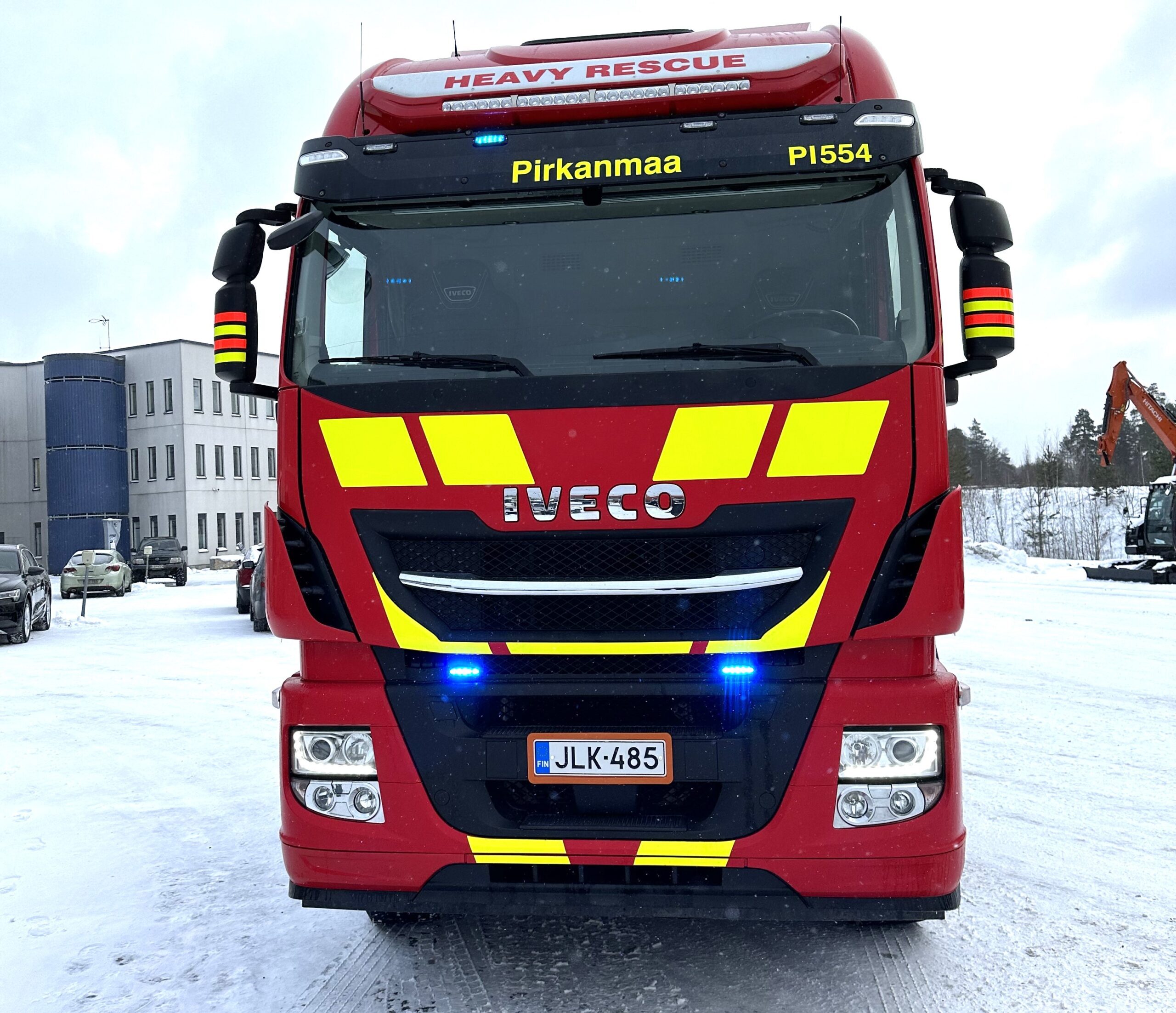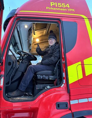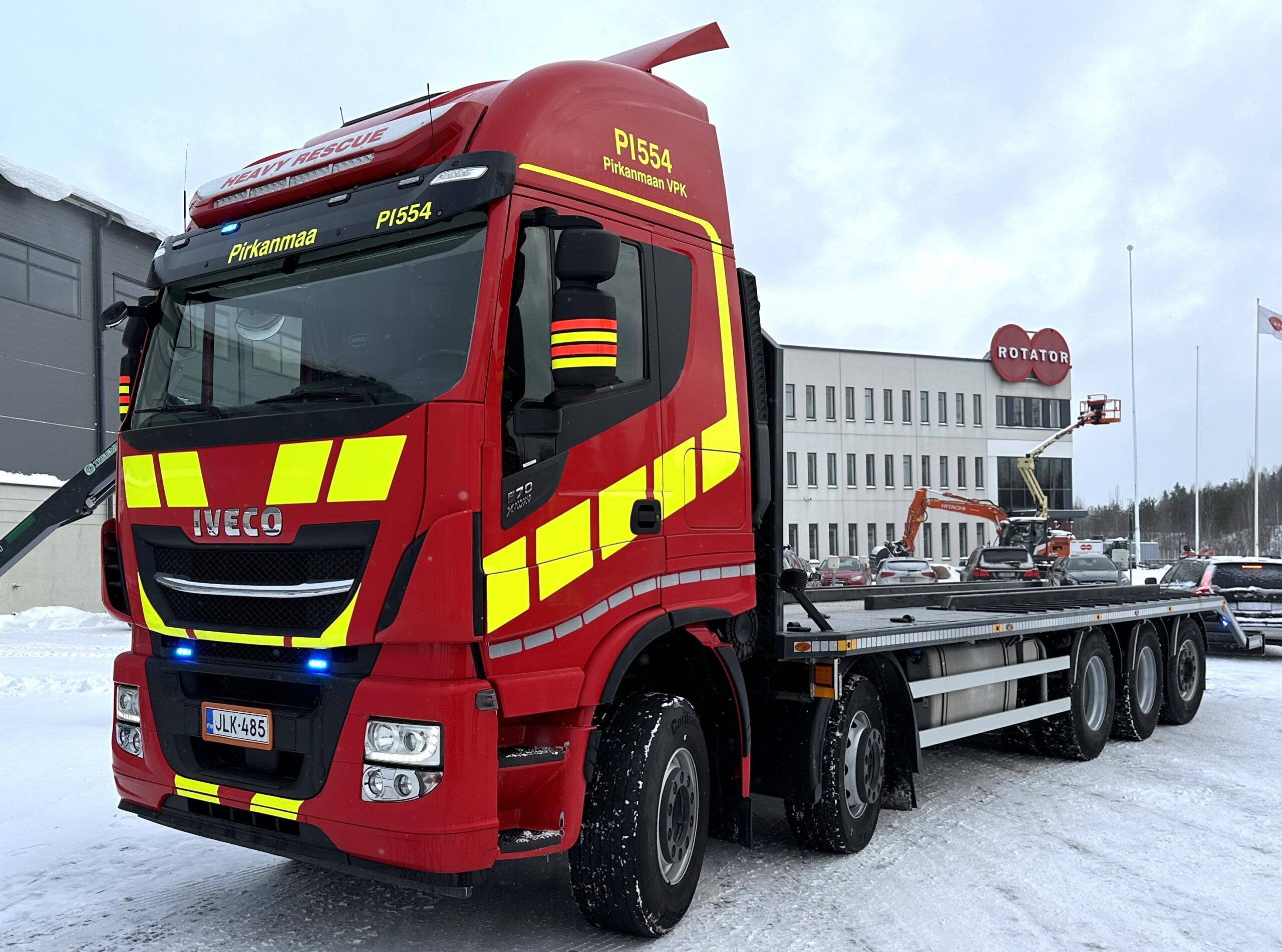 ”Täytyy myöntää, että kysyntä ja tarjonta kohtaavat harvoin niin sopivasti kuin Pirkanmaan VPK:n yhteydenoton jälkeen. Meille oli tullut vaihdossa vuoden 2019 X-Way alustana ja teimme siitä F-Koneen ritiläauton VTA:n viitosakselilla. Kokonaispainoa autolla on 42 tonnia ja kantavuutta jää 27 tonnia, mikä riittää Hitachin kuljetuksiin mainiosti. Koostaan huolimatta Ivecoa saa ajaaa C-kortilla, mikä oli myös VPK:lle merkittävä kriteeri. Tehokas 13-litran 570 hevosvoiman moottori takaa puolestaan perille pääsyn haastaviinkin kohteisiin riittävällä nopeudella. Teimme myös kaikki muut vaadittavat varustelut, mikä kertookin omaa kieltään Ivecon osaamistasosta yksilöllisten ajoneuvovarustelujen suhteen. Olenkin varma, että X-Way suoriutuu tärkeistä tehtävistään turvallisesti ja luotettavasti vuosiksi eteenpäin”, kertoo Topi Kontula.