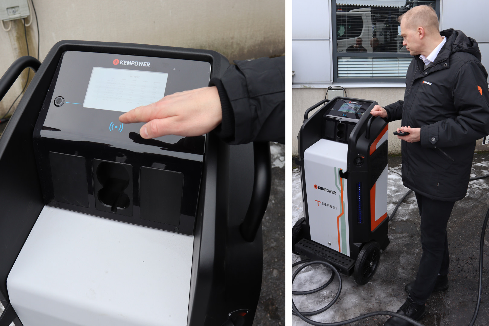 ”Julkiset teholatauspaikat ovat vasta nyt rakentumassa todenteolla henkilöautopuolella. Raskaan kaluston puolella ei tällaista infraa ole vielä olemassa lainkaan”, sanoo Destian Tuomas Mäkelä. Destia on aloittanut äskettäin latausjärjestelmien toteuttamispalvelun. Palvelu on suunnattu lähinnä yksityisten latausjärjestelmien rakentamiseen, joissa ajoneuvojen määrä on muutamaa autoa enemmän. Varsinaisen järjestelmän rakentamisen ohella Destia tarjoaa järjestelmän suunnittelua, leasing-rahoitusta ja ylläpitoa. Laitteistojen osalta Destia ei ole merkkisitoutunut, mutta suosii kotimaisen Kempowerin latausjärjestelmiä. Helpoin tapa aloittaa raskaan sähköautokaluston lataus on hankkia Kempowerin siirrettävä laturi. Se on ison painepesurin oloinen laite. Sillä pystyy lataamaan yhtä autoa 40 kilowatin teholla tai kahta 20 kilowatin teholla kerrallaan. Sulakevaatimus laitteelle on 63 ampeeria. Isommat ja kiinteät latausjärjestelmät kootaan moduuleista. Niitä voidaan myös jatkossa laajentaa, jos ladattavien ajoneuvojen määrä kasvaa.