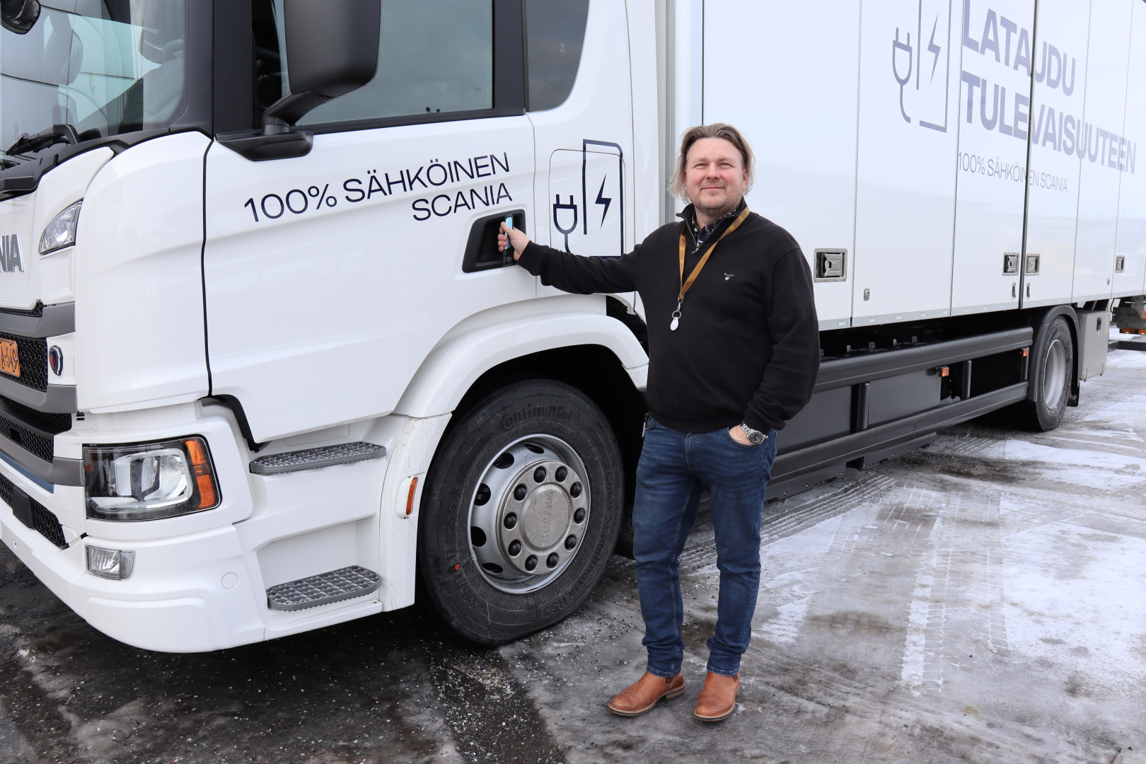 Rene Mattsson tavattiin Scanian kiertueen ensimmäisellä etapilla Liedossa. Mies luotsaa turkulaista, länsirannikolla operoivaa Action Lähetit Oy -kuljetusliikettä. Yritys hoitaa alueen UPS-pikakuljetuksia vajaalla parilla kymmenellä ajoneuvolla, viimeaikoina pääosin kolmella täyssähkökäyttöisellä Mercedes-Benz Sprinterillä. Ne tulivat ajoon viime vuoden alussa ja nyt Mattsson laskeskelee niillä kuljetetun jo yli 65 000 lähetystä. Mattsson sanoo hankkineensa sähköpakettiautot lähinnä kokeilumielessä. Ajosuoritteesta tehtävä laskutus kun on sama mitä polttomoottorilaitteillakin, joten siltä osin hankintaa on vaikea perustella. Mattsson haluaa kuitenkin olla vahvasti mukana kuljetusten päästöjen vähentämisessä. Siitä osoituksena hän sanoo olevansa parhaillaan solmimassa kauppaa viidestä uudesta sähköpakettiautosta. Näin sähköajoneuvojen osuus yrityksen kalustossa on kohta jo lähes puolet. Mattsson muistuttaa myös, että heidän käyttämät sähköjakeluautot ovat ilmeisesti ainoat UPS:n ajoissa olevat, ainakin Suomessa.