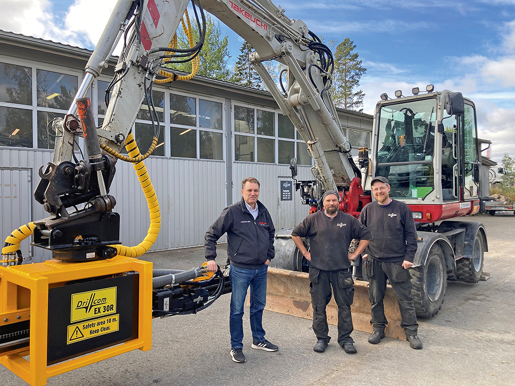 ”Tämä nyt Takeuchiin asennettu Drillcom EX30R -laiteratkaisu voi hyvinkin herättää laajempaakin kiinnostusta”, uskovat Honka Trading Oy:n Antti Forma ja Drillcomin Teemu Hänninen ja Heikki Tervonen.