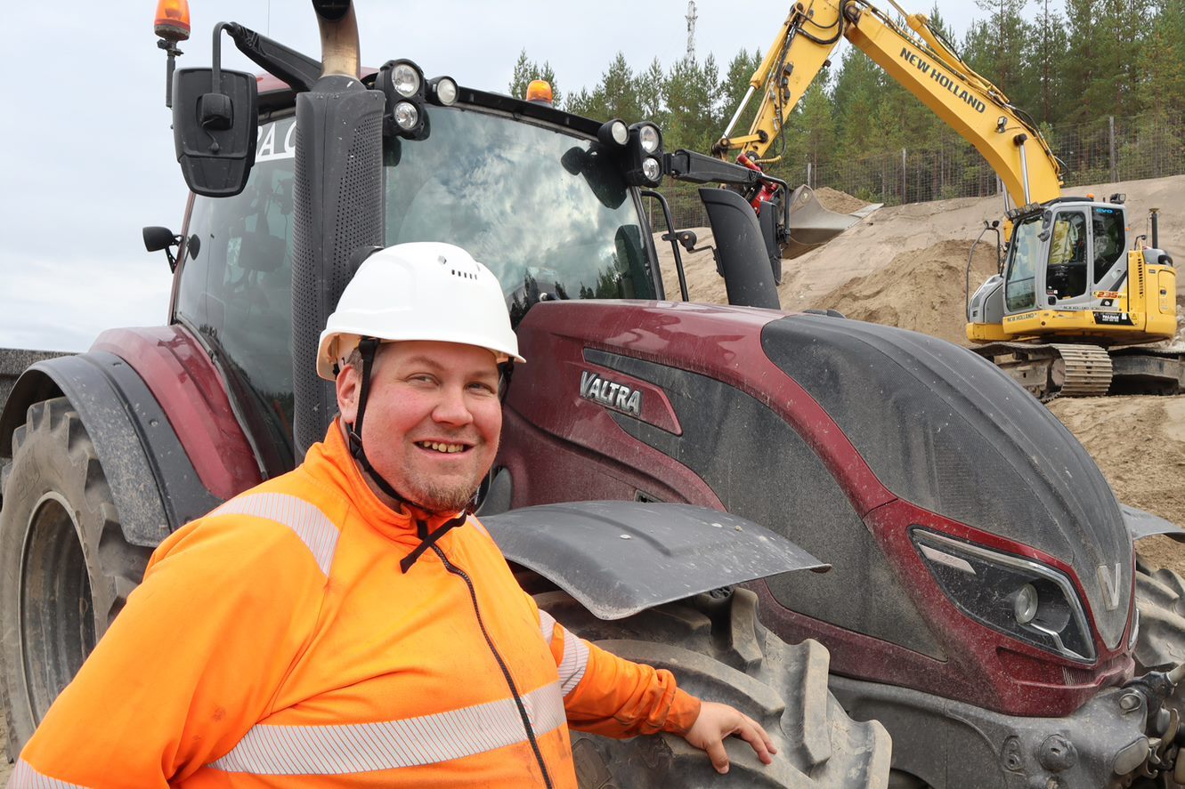 ”Tämä työmaa runsaine maansiirtoineen on aivan omiaan traktoreille. Oikeastaan mikään muu tapa ei tullut kysymykseen. Dumppereilla ei saa ajaa tiellä, mitä täällä on pitänyt tehdä runsaasti. Kuorma-autoille työmaateiden perustaminen taas olisi ollut vaikeaa ja kallista. Traktorilla kuormat kulkevat huonoilla pohjilla ja märissäkin olosuhteissa”, tiivistää Suova traktorien etuja.