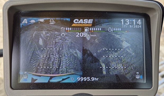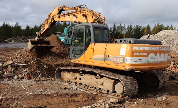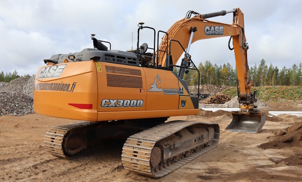 Juho Manninen on erittäin tyytyväinen uusimman Casen, CX300D (30 t/161 kW), toimivuuteen. 10 000 käyttötuntia tuli juuri siis täyteen, ja ne ovat kertyneet Juhon mukaan mittariin ilman korjaamokäyntejä. Mies hämmästeleekin korjausten vähyyttä, joka kuulemma pätee myös muissa talon Case-koneissa. Taukopäiviä korjausten takia ei tälle koneelle ole kertynyt.
