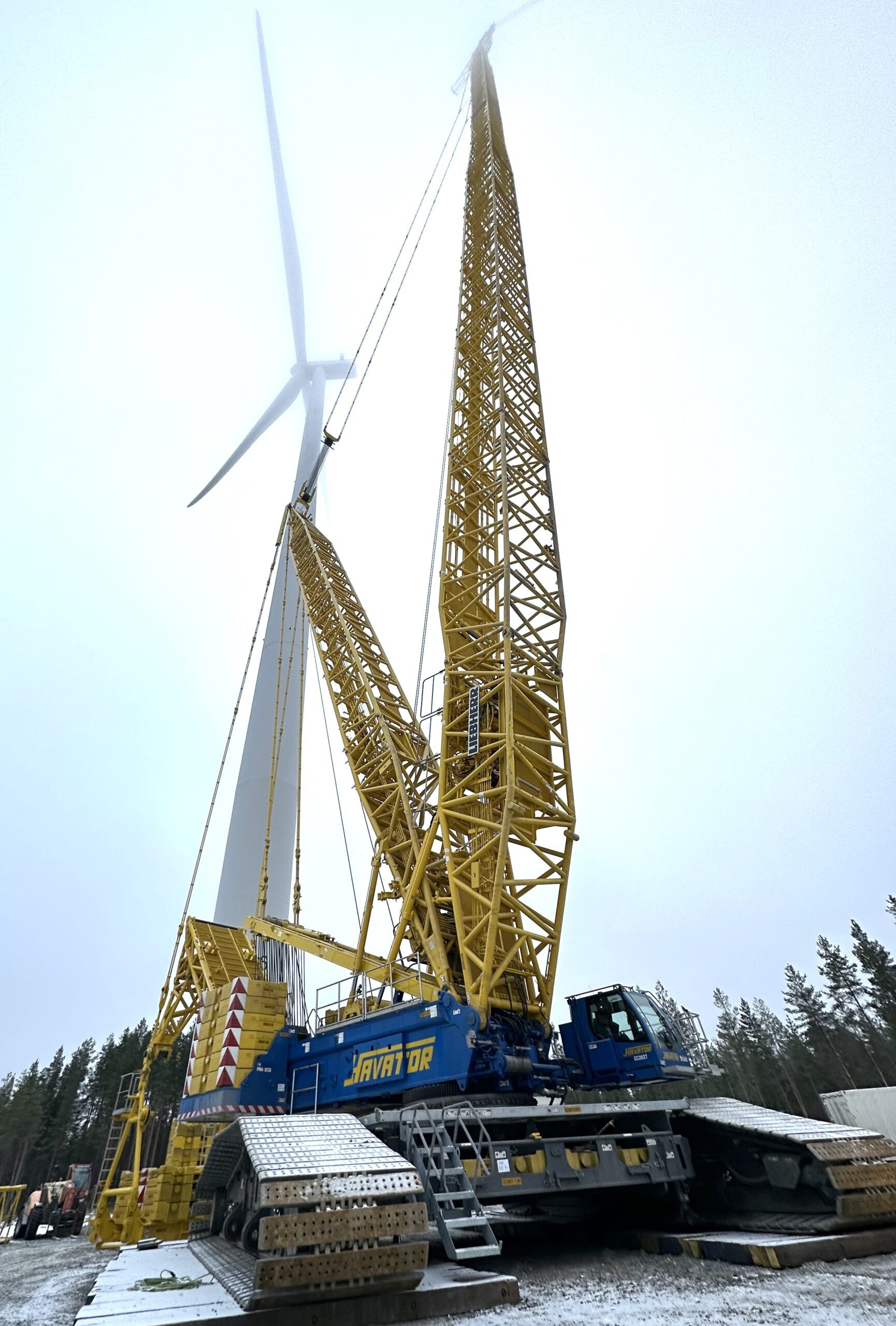 ”Järkevän rakennesuunnittelun ansiosta kuljetukseen tarvitaan vain kolme erikoislavettia, ja kaikki muu saadaan paikalle peruskuljetuskaluston avulla. Aikataulutus on oletetun tarkkaa ja nosturin on oltava käyttökunnossa, kun tuulivoimalan oma henkilöstö on valmiina asennustyöhön. Kaikessa korostuvat tietenkin turvallisuusnäkökohdat ja esimerkiksi sääolosuhteet otetaan tarkoin huomioin. Kaiken sujuessa itse pääakselin vaihtourakka ei vie kuin pari päivää, mikä kertoo omaa kieltään Liebherrin tehokkuudesta”, kertoo Havatorin nosturinkuljettaja Teemu Junttila.