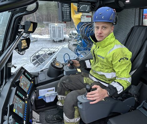 Nosturinkuljettajan ammatissa täytyy aina varautua muutoksiin ja myös Konepörssin vierailupäiväksi suunnitellut nostot siirtyivät tuulivoimalan sähköongelmien vuoksi eteenpäin.