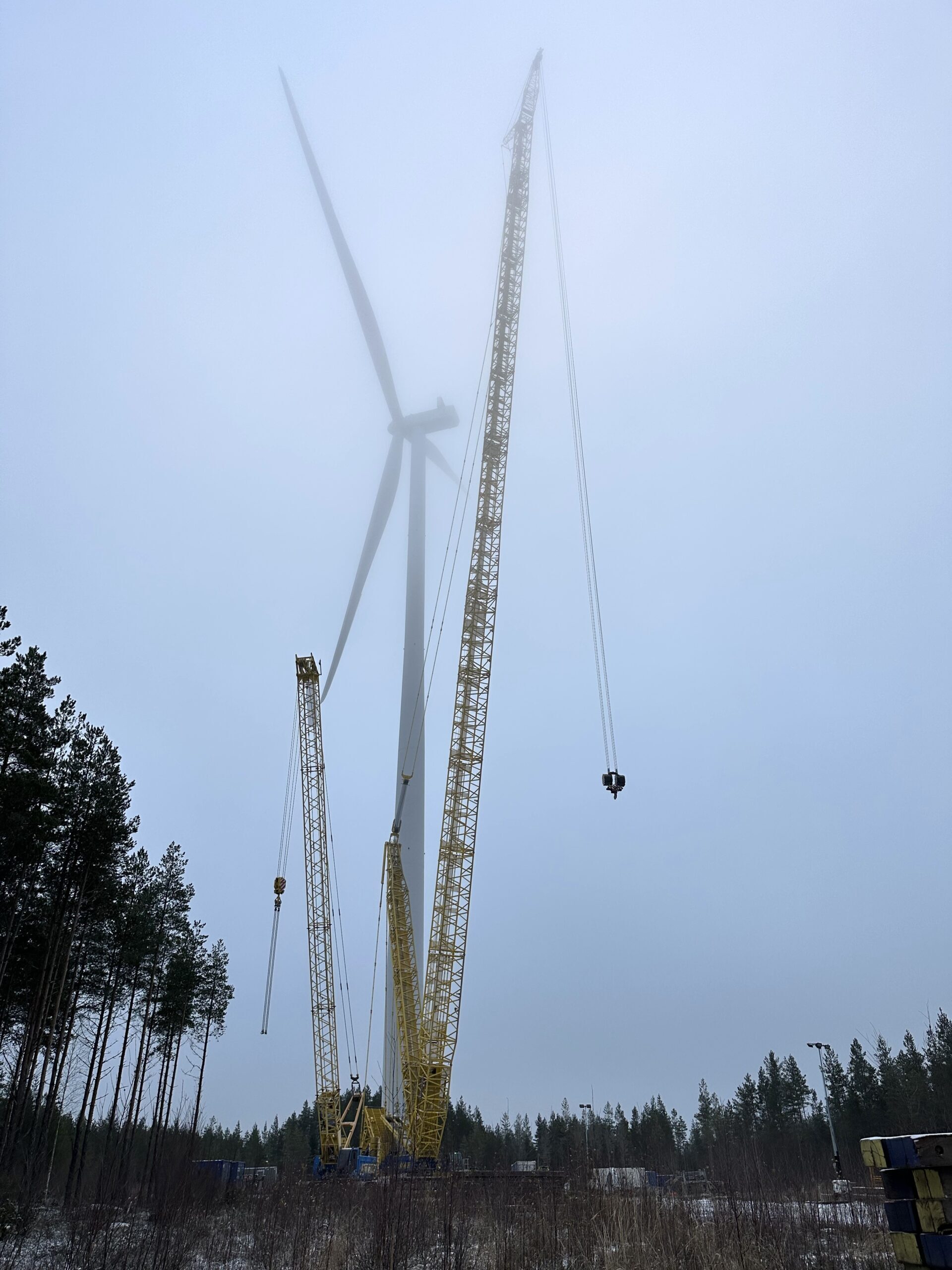 ”Tämä on aivan normaalia, mutta kaikkeen täytyy olla valmiina. Aikataulut voivat muuttua nopeastikin, ja esimerkiksi yhdeksän metrin tuuliraja tai näkyvyyden heikentyminen voivat seisauttaa urakan päiväkausiksi. Tämän kokoluokan nosturitöissä työskentelevillä pitää olla hyvät hermot ja korkea paineensietokyky, ja täytyykin todeta tänne Kannukseenkin löytyneenkin sopivan porukan, joka ei ihan pienistä ongelmista toimintakykyään tai huumorintajuaan menetä”, kiittelee Junttila.
