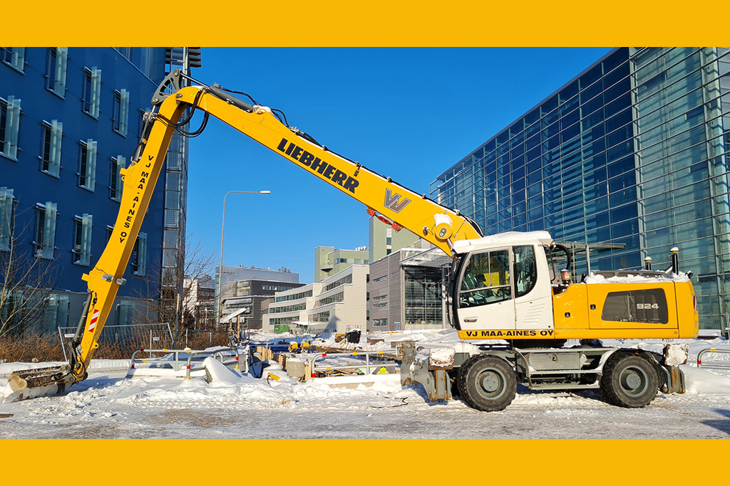 Toimitusjohtaja Ville Sainio kertoo miettineensä konseptia jo monta vuotta. Aiemminkin hankinta on ollut liipaisimella, mutta aina kaatunut vääränlaiseen puomiin, liian korkeaan hintaan tms. Konetyyppiä ei hirveästi ole ollut saatavilla kansainvälisiltäkään markkinoilta. Liebherr Finland välitti nyt vuodenvaihteessa Saksan Liebherriltä VJ Maa-ainekselle 3 000 tuntia ajetun, vuoden 2016-mallisen kaivukoneen. Se varustettiin Suomessa urbaaniin tyyliin 3D-koneohjausjärjestelmällä.