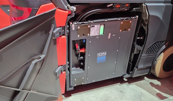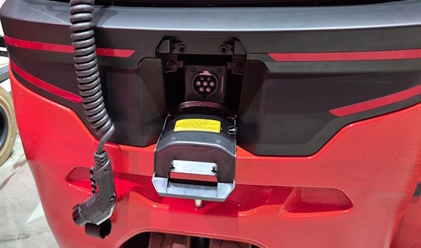 Muutoinkin litiumioniakkuinen trukki tarjoaa helppoa kunnossapitoa. Lataus tapahtuu henkilöautoista tutun CCS-liittimen näköisellä pistokkeella. Se ei kuitenkaan tue samaa latausjärjestelmää. Itse asiassa lataus on helpompaa, koska se onnistuu trukin mukana kulkevalla välijohdolla mistä tahansa voimavirtapistokkeesta.