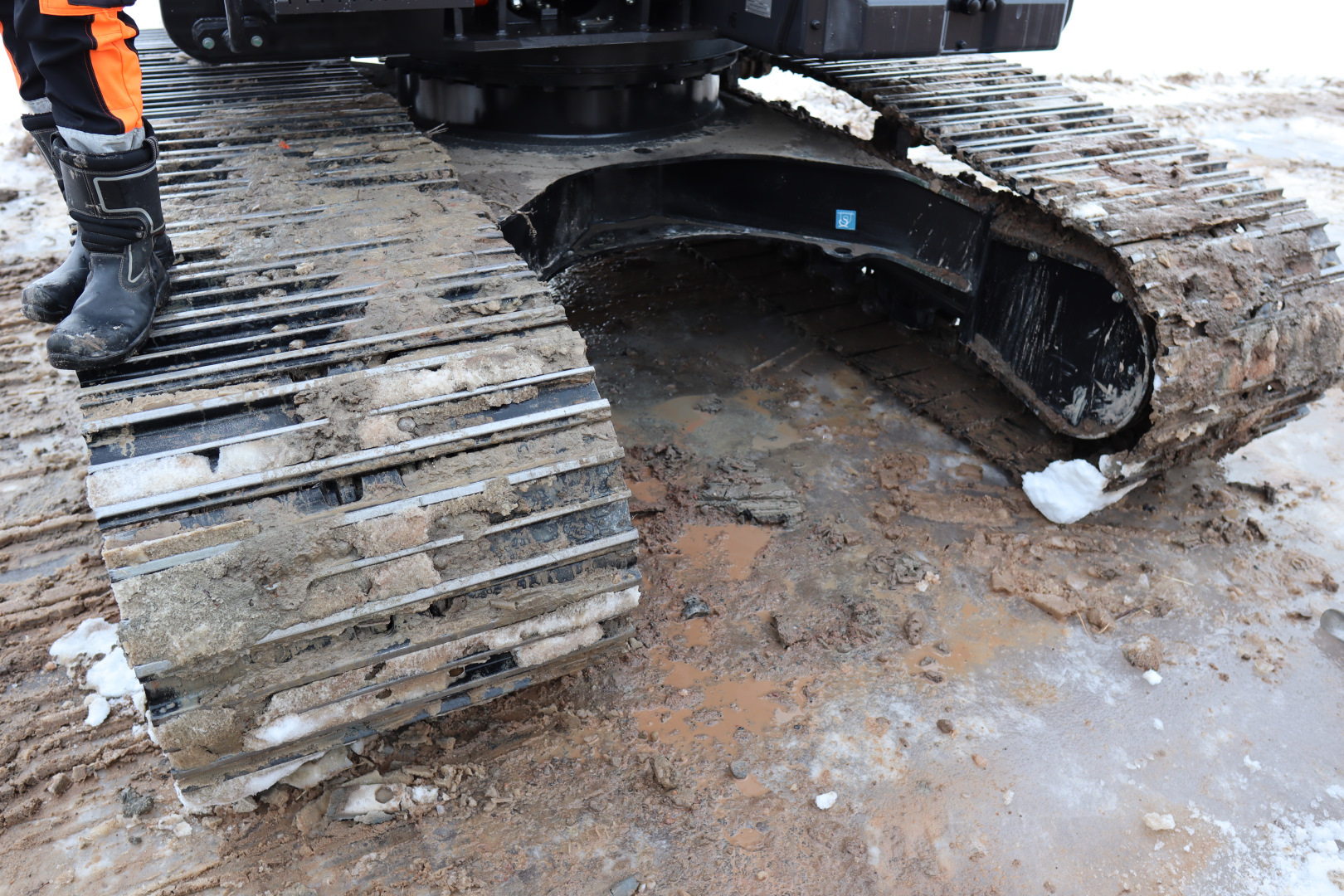 Koneen tilaus tehtiin viime kesän lopulla ja uusi seiskasarjalainen saatiin vuoden alussa työmaalle. Tehtaalta tullessaan tässä Puhakan koneessa oli leveämmät 800 millimetrin telalaput. Loput lisävarustelut tehtiin Rotatorin Seinäjoen toimipisteellä.