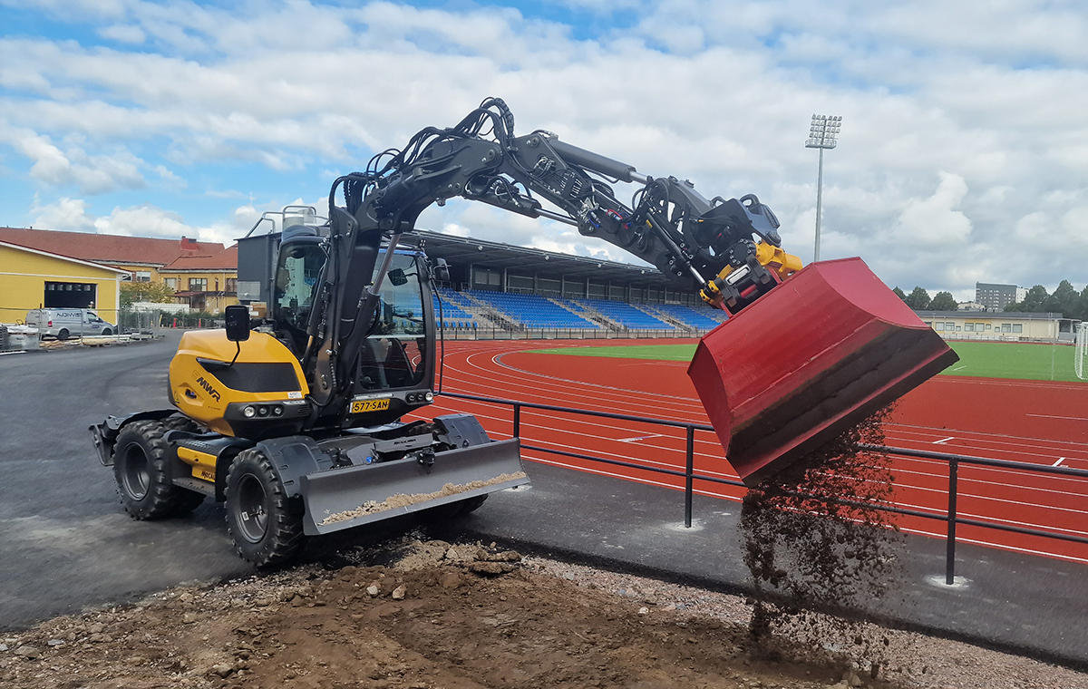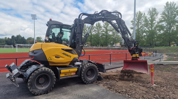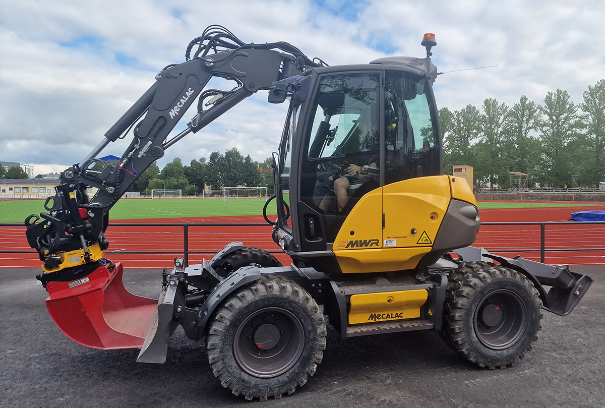 Suomessa Mecalac on kuitenkin ollut läsnä jo 90-luvulta lähtien, ensin Satahydron ja sittemmin pitkään Hansa-Machinesin edustuksessa. Alkuvuodesta Mecalacin kaivukoneet siirtyivät merkin pyöräkuormaajien seuraksi RealMachinery Oy:lle ja ensimmäisiä koneita on jo toimitettu asiakkaille. Kävimme katsomassa VJ Maa-aines Oy:n upouutta pyöräalustaista 9MWR-mallia Järvenpäässä, missä loppusuoralla oli urheilukentän saneeraus.
