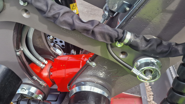 VJ Maa-aineksen koneessa on kauhanpyörittäjän yläpäässä myös Mecalacin itsensä kehittämä Connect-pikakiinnityslaite, joka kaikessa yksinkertaisuudessaan on varsin nerokas.