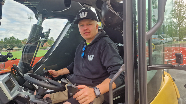 Vierailuhetkellä koneella oli ajettu vasta muutamia tunteja, joten mitään kokemuksen syvää rintaääntä oli turha tavoitella. Puikoissa Mecalacia käskyttää nuori Joel Lundqvist (24 v), jolla kokemusta on jo kertynyt niin tela- kuin pyöräalustaisista kaivukoneista.
