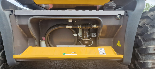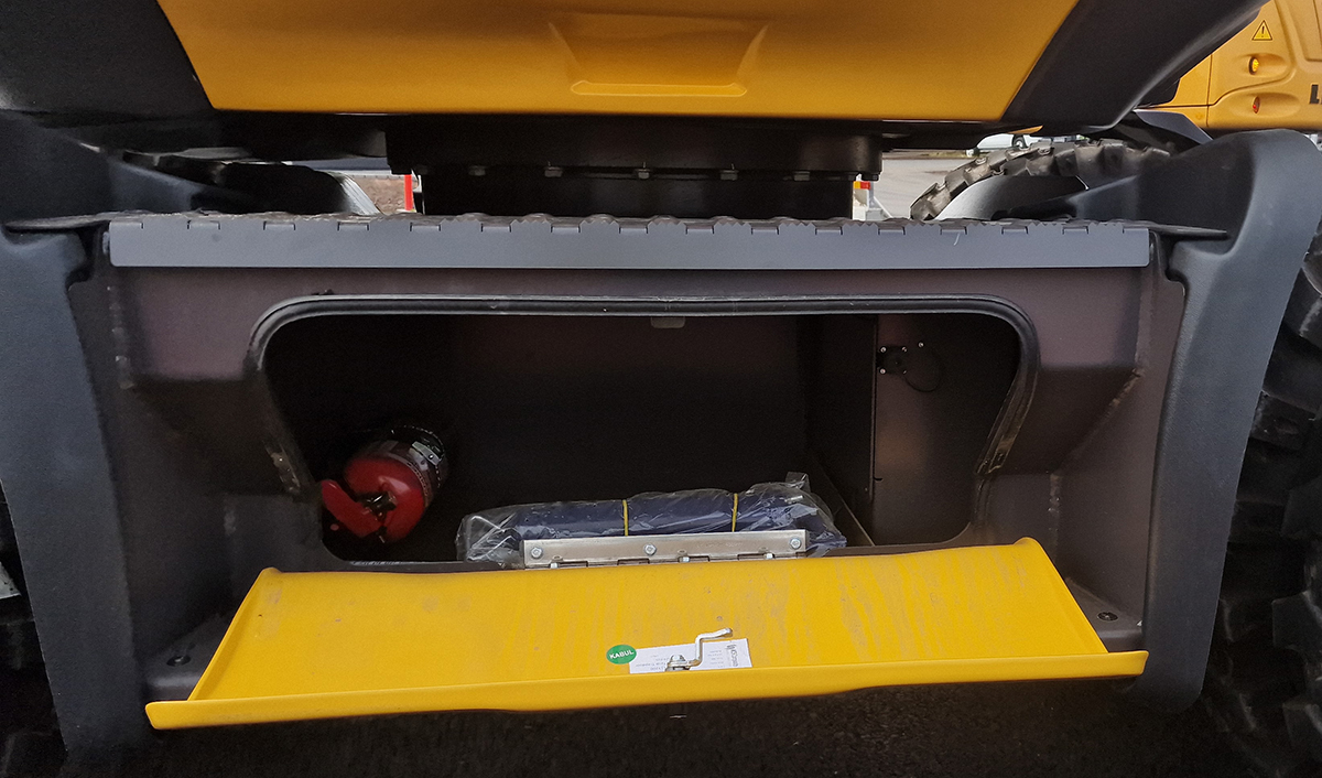 Koneen matala rakennekorkeus sallii myös vaihtolavalla kuljettamisen.