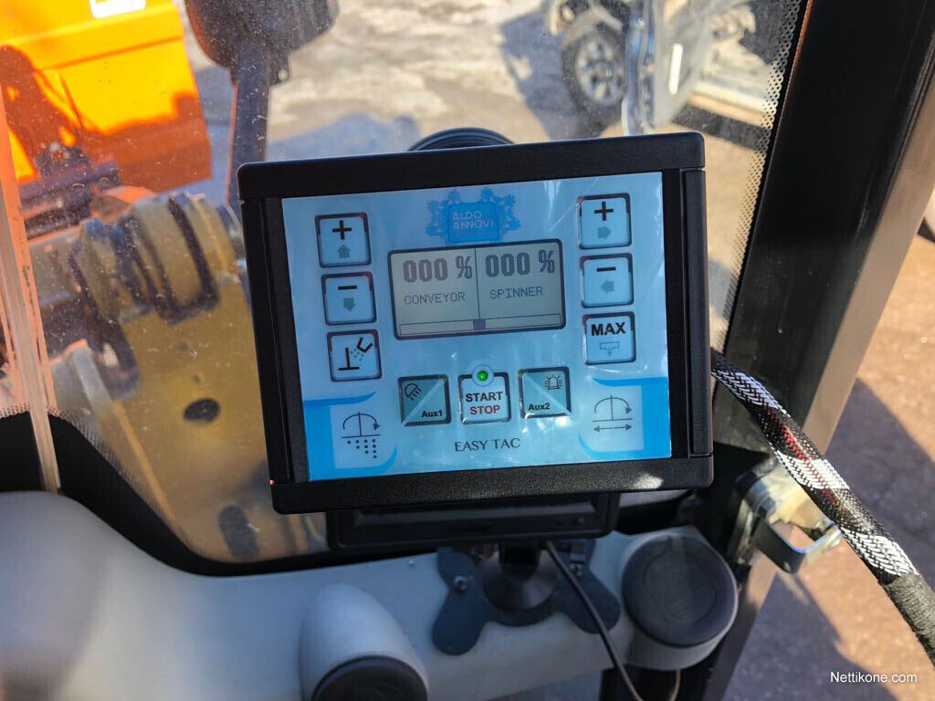 Varustettuna työvaloilla, säiliön suojaritilällä ja suojapressulla, sekä GPS ohjatulla ajonopeuden mukaan säätyvällä levitysmäärän säädöllä.