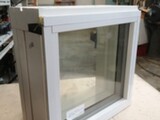 Kiinteä ikkuna, L 390mm x K 390mm Sisä ja ulkopuoli valkoinen, ulkopuite alumiini. Lasit