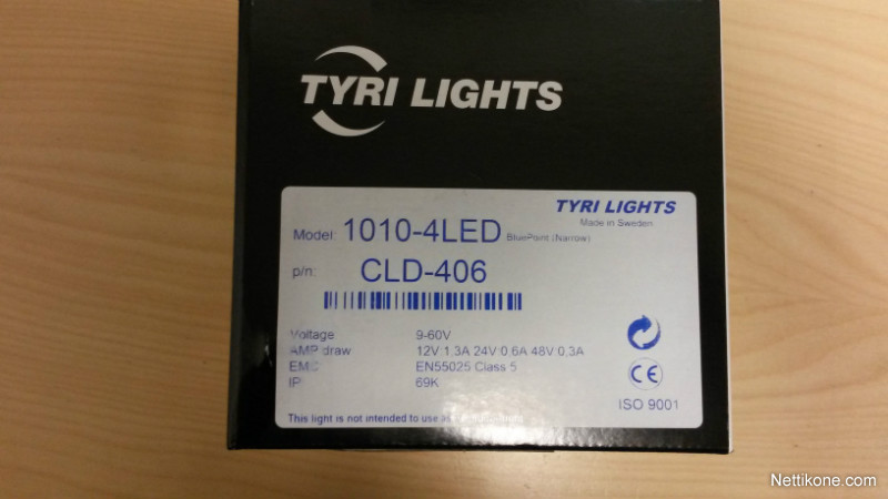 4 LEDiä, IP69K -suojattu, toimii jopa -40 C pakkasessa, EMC EN55025 Class 5 häiriösuojaus.