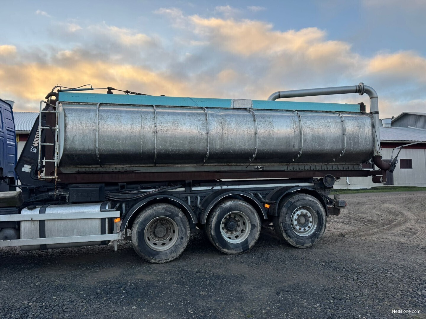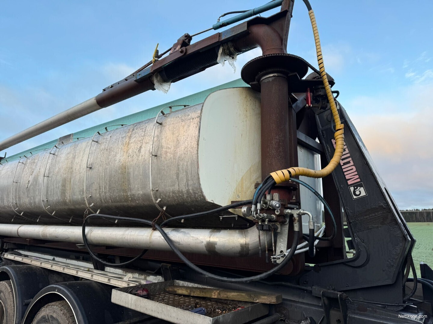 Mattilan alumiinisäiliöstä tehty lietteensiirtotankki. Hydraulinen purku ja sekoituspumppu. Purkupuomi 7m kääntyy eteen taakse ja molemmille puolille. Mittalasi, alatäyttö vaahtolinja 6tuuman perrot ja haarukkaliittimillä. Hyötykuorma noin15m3 tyhjennys aika noin 3 minuuttia. Hinta/tarjous