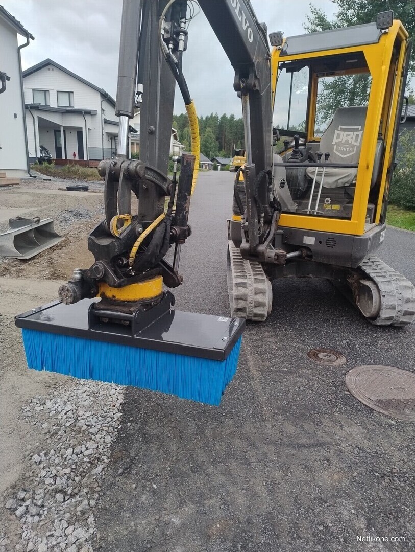 Varusteita mm kauhanpyörittäjä brobona, Usevolt 2letku ohjausjärjestelmä, hydraulinen kauhanlukko, led valot, 4kauhaa ja harja.